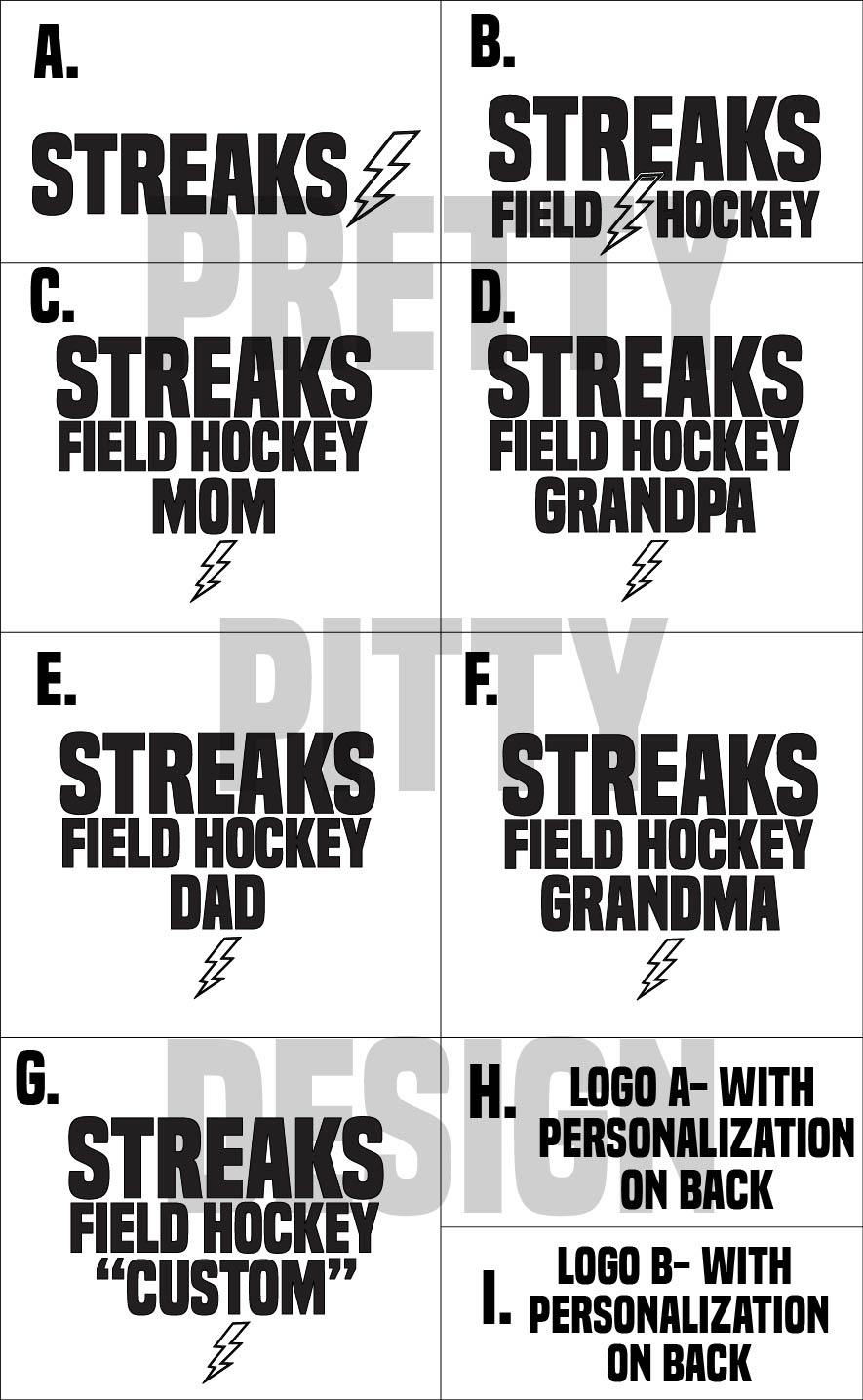 A portion of each sale goes to Streaks Field Hockey Booster Club